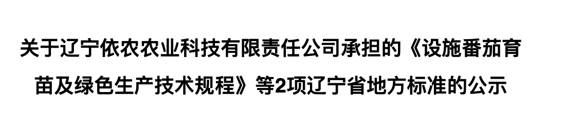 根據(jù)遼寧省地方標準管理辦法(遼農(nóng)監(jiān)[2017]34號)要求,現(xiàn)將遼寧依農(nóng)農(nóng)業(yè)科技有限責(zé)任公司和遼寧省農(nóng)業(yè)科學(xué)院共同承擔的《設(shè)施黃瓜育苗及綠色生產(chǎn)技術(shù)規(guī)程》征求意見稿和《設(shè)施番茄育苗及綠色生產(chǎn)技術(shù)規(guī)程》等2項遼寧省地方標準進行公示,并面向社會征求意見.